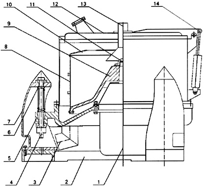 轉(zhuǎn)鼓直接裝在電動(dòng)機(jī)主軸上,電動(dòng)機(jī)帶動(dòng)轉(zhuǎn)鼓高速旋轉(zhuǎn),物料由上部加料管加入轉(zhuǎn)鼓,在離心力作用下趨向鼓壁,其中液相穿過(guò)濾布和鼓壁濾孔排出,固相截留在轉(zhuǎn)鼓內(nèi),停機(jī)后打開(kāi)機(jī)蓋,用人工卸出,改型后還可以吊袋卸料。